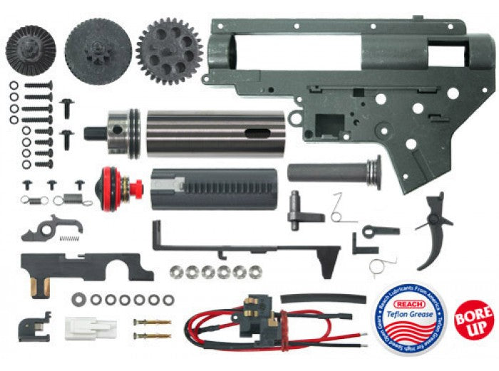 A complete Gearbox Upgrade kit includes ALL parts for upgrading your Airsoft Electric Gun AEG